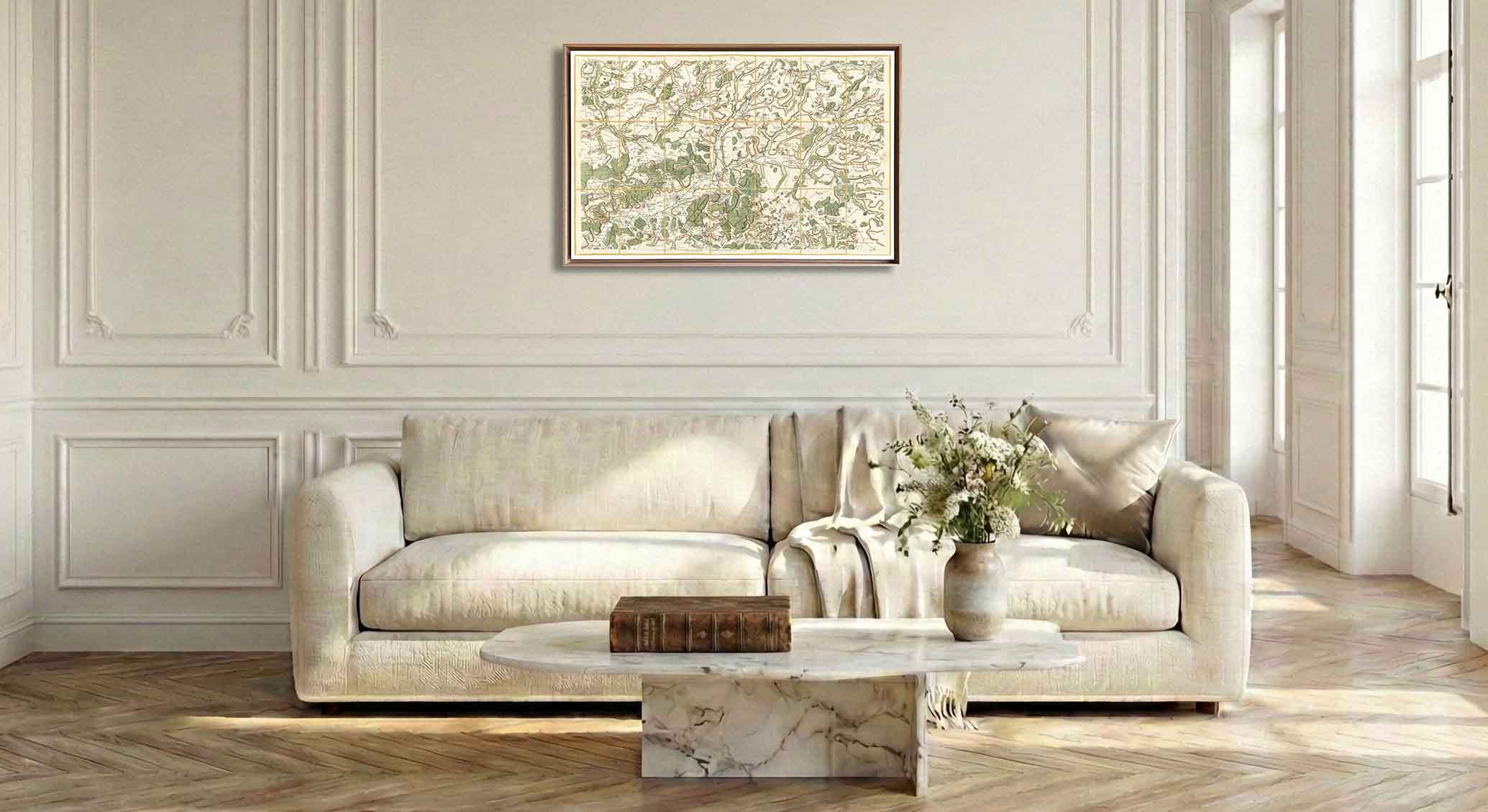 Encadrement classique en chêne clair pour carte de Cassini - Feuille 43 - Laon – Noyon